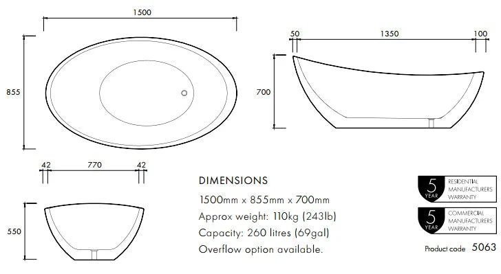 Apaiser Oman 1760mm Freestanding Bath